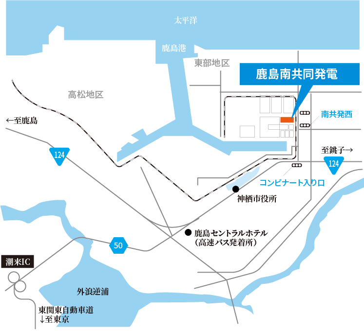 ●東京~波崎線: 東部コンビナート下車(約100分) ↓ ●徒歩10分