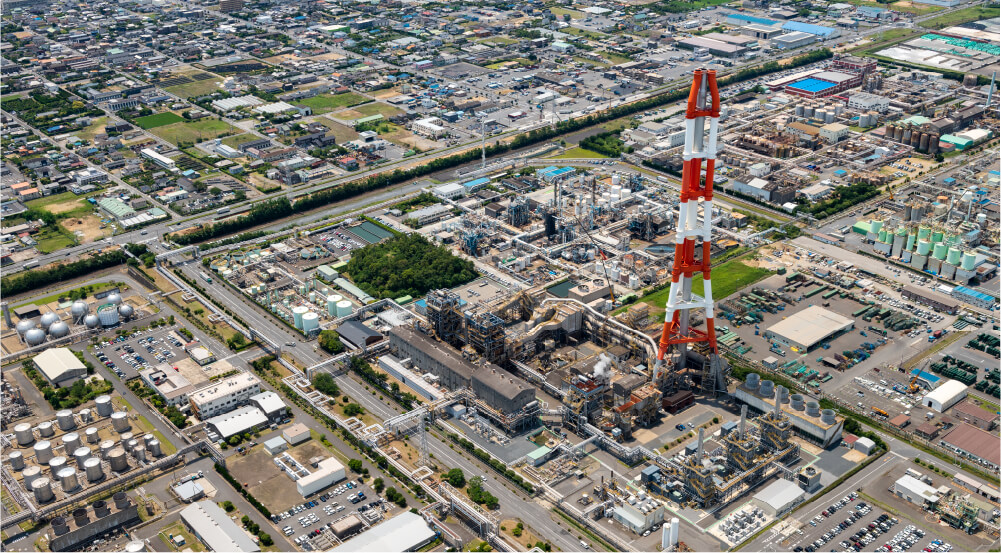 South Kashima Power Plant Inc. supplies electricity, steam and demineralized water to fifteen companies located in the Southern Group of the Kashima Coastal Industrial Zone Eastern Complex.Our customers include AGC, ENEOS Material, Kuraray, Mitsubishi Gas Chemical, ADEKA, Kaneka and other major companies active throughout the world, all of which require vast amounts of energy on a daily basis to support their production activities.Their production lines are not stooped because of our energy supply.